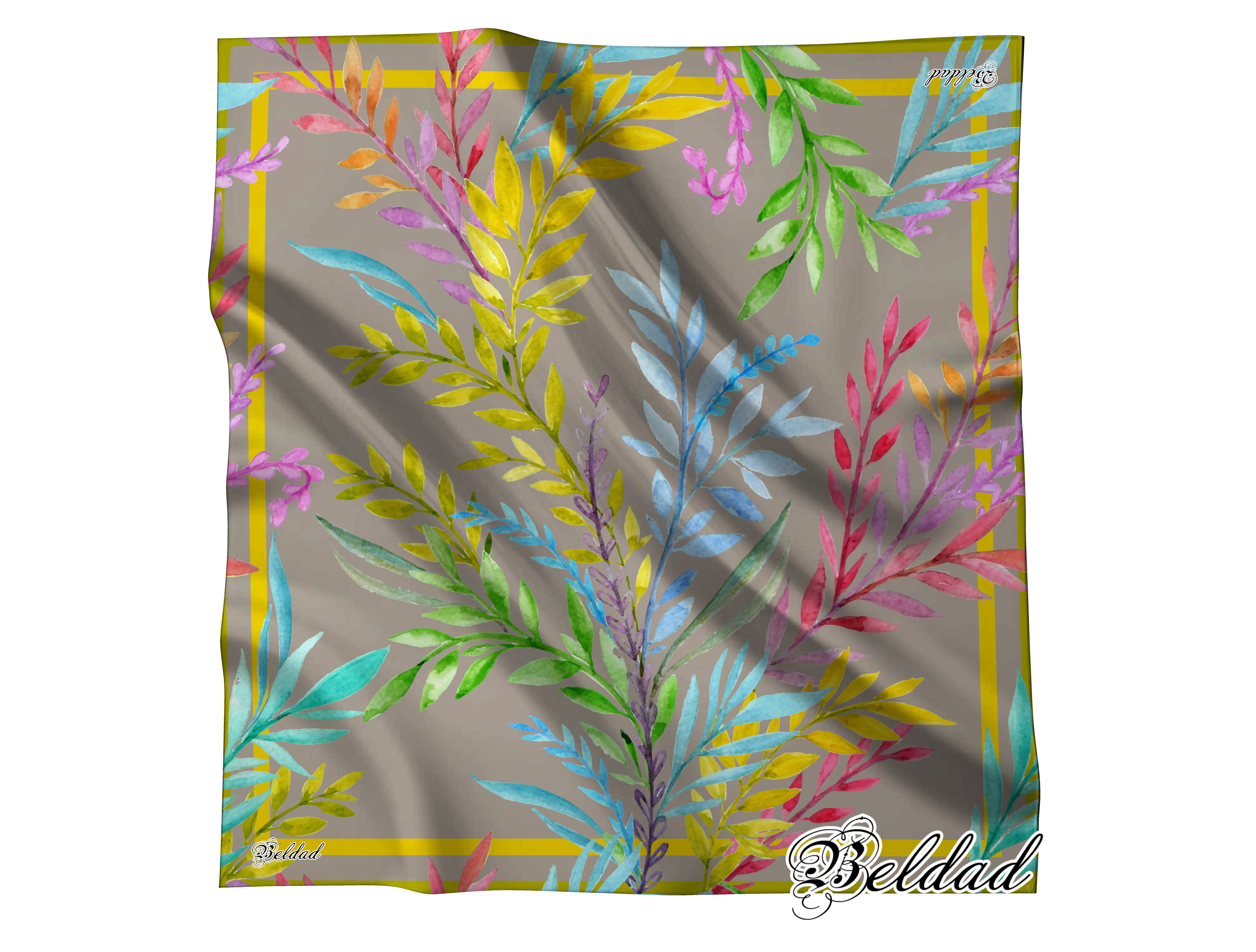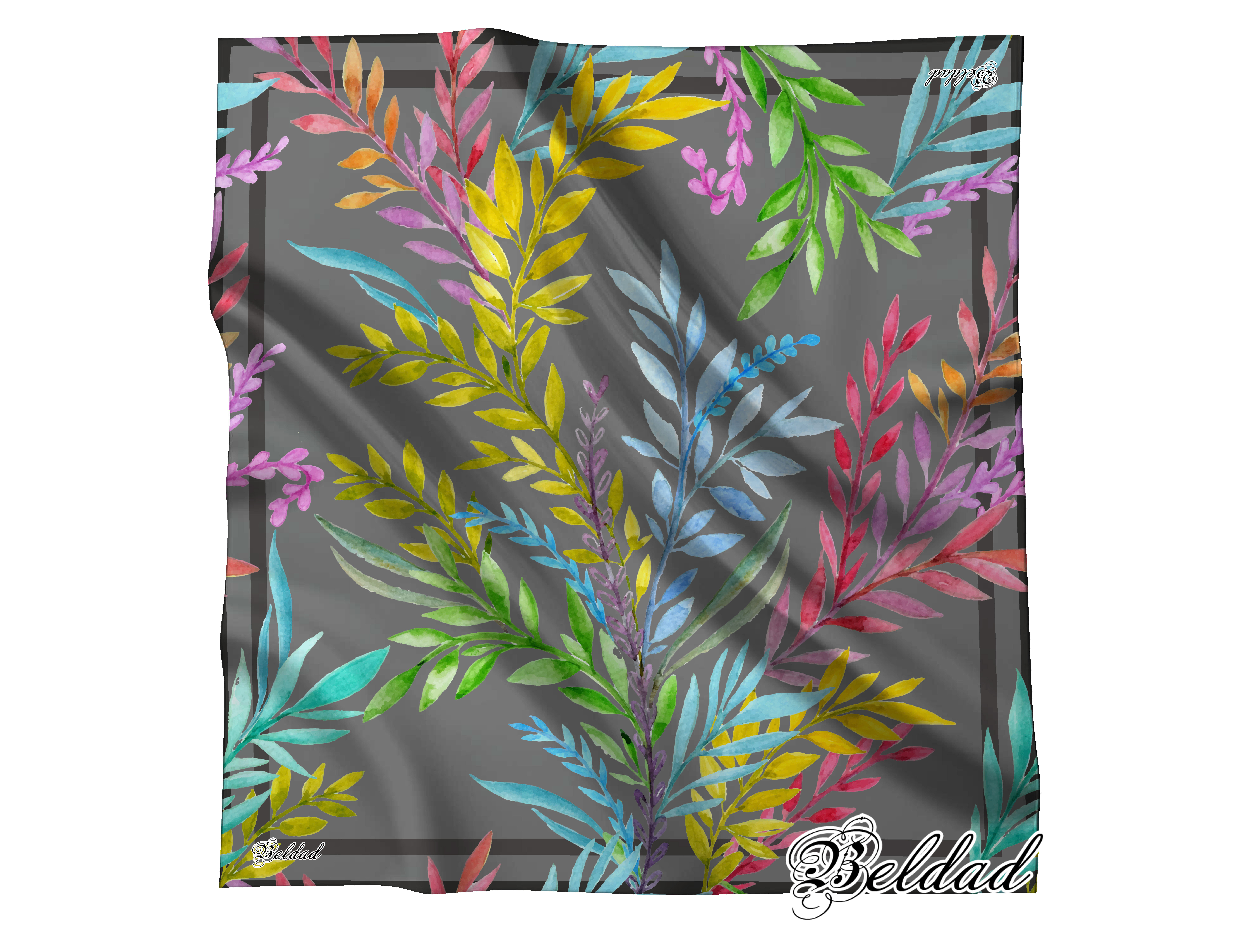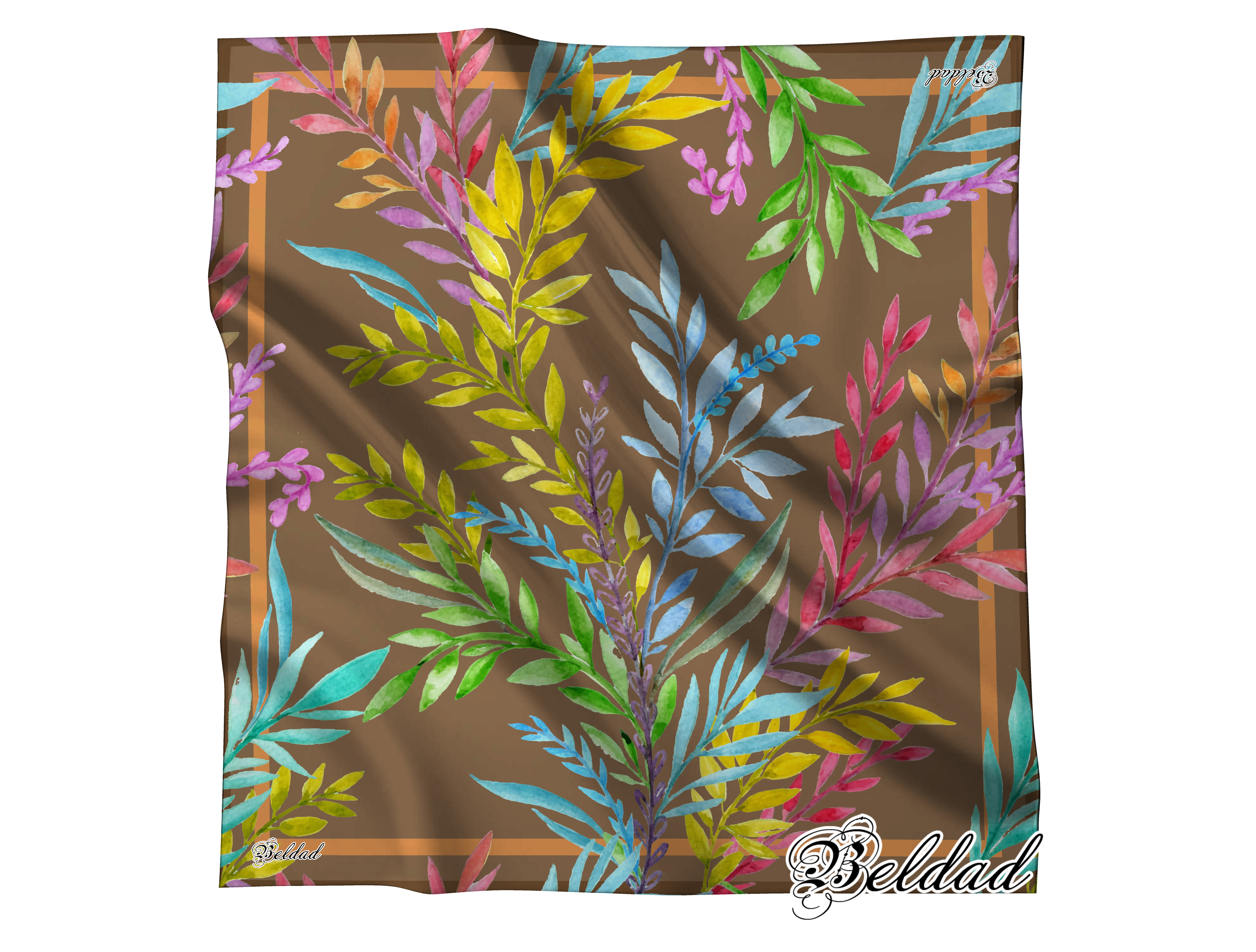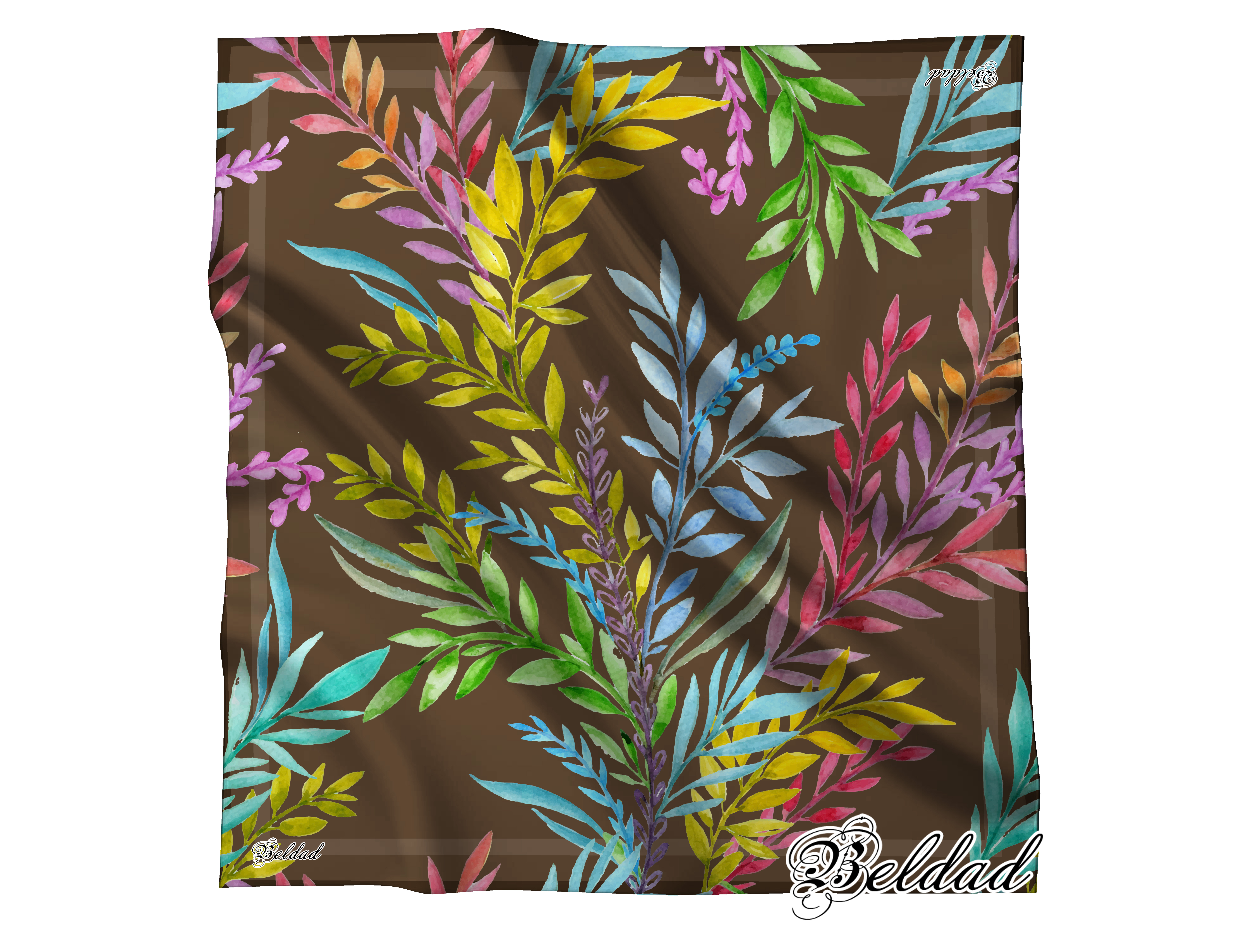 Bu özel eşarp, büyük ve gösterişli yaprak desenleriyle doğanın iç sesini ipeğin yumuşacık dokusunda yeniden yorumluyor.